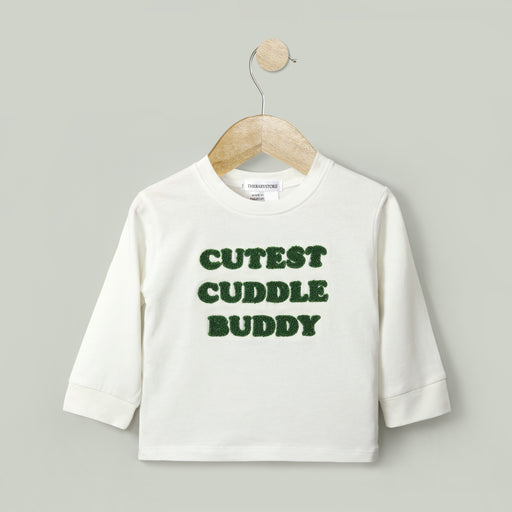 A charming two-piece outfit featuring a cutest,cuddle,buddy embroidery, paired with comfy pants. Made from soft, breathable cotton for all-day comf...