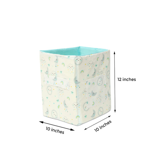 Add a touch of whimsy and calm to your nursery with this Dreamy Sky Toy Basket. Featuring an adorable pattern of sleepy moons, cheerful suns, fluff...
