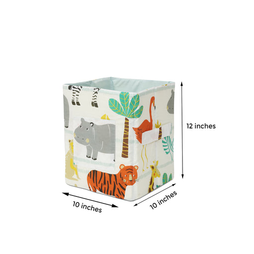 Decorated with charming illustrations of hippos, tigers, zebras, monkeys, and palm trees, this foldable fabric storage bin is perfect for keeping t...