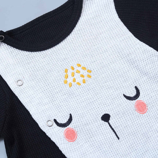 This adorable black romper features a playful panda face appliquΓ© on the back, making it a fun and stylish choice for your little one. Crafted from...
