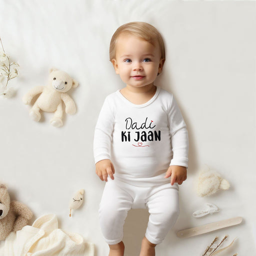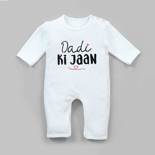 Introducing our Dadi ki Jaan Embroidered Baby Romper! This adorable outfit features delicate embroidery with the sweet phrase "Dadi ki Jaan". Made ...