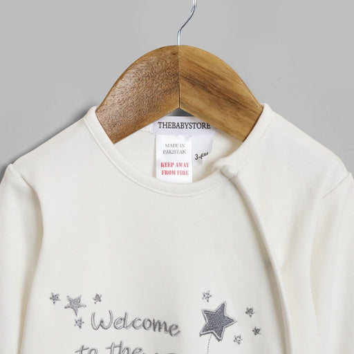 Wrap your little one in pure comfort with the Welcome to the World Sleepsuit. Made from soft, breathable fabric, this adorable onesie features a ge...