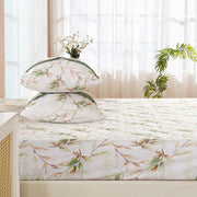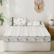 Transform your bedroom into a peaceful retreat with our Ethereal Garden Quilted Fitted Sheet. Designed with an allover leafy print and soft thread quilting, it offers both style and extra comfort. Made from breathable fabric for a perfect snug fit, it comes with two matching pillow covers to complete the fresh, spring-inspired look.