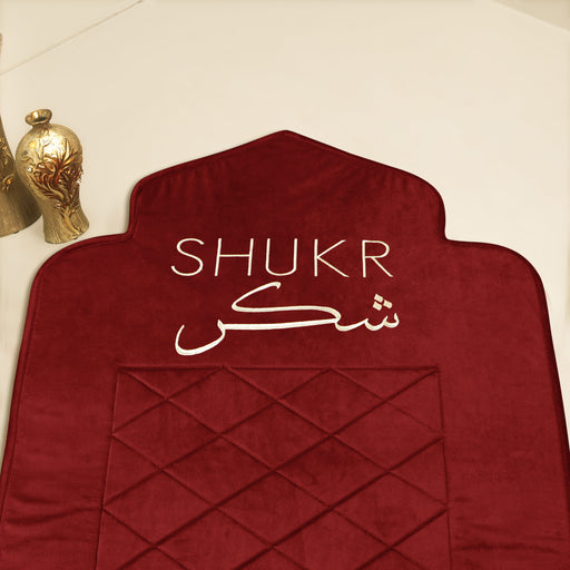 This luxury prayer mat with Shukar embroidered on it is padded, and ensures no shock on prostration Dimensions: 47" x 27" Material: Velvet Product...