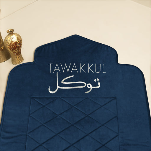 This luxury prayer mat with tawakkul embroidered on it is padded, and ensures no shock on prostration Dimensions: 47" x 27" Material: Velvet Produ...