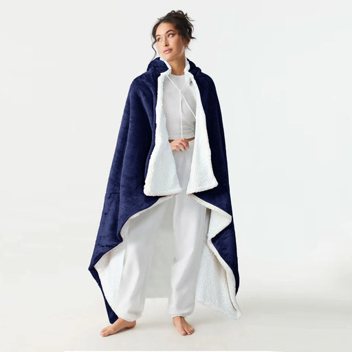 This perfectly draped fleece cape with a warm hood and soft sherpa inside is perfect to snuggle up during cozy winter nights. Product includes:1 fr...