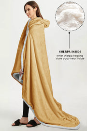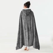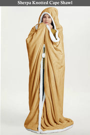 This perfectly draped fleece cape with a warm hood and soft sherpa inside is perfect to snuggle up during cozy winter nights.