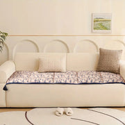 This charming sofa topper features a blush pink base adorned with delicate navy blue and off-white floral prints, offering a gentle, cozy, and feminine touch to your home decor. The topper is generously padded and quilted into rectangular segments, ensuring maximum comfort whether used for lounging or as a stylish sofa protector. The combination of soft pastel and bold dark blooms creates a modern yet playful contrast, making it a perfect fit for both contemporary and vintage-inspired interiors.