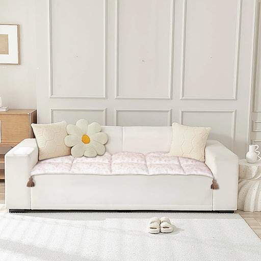 The sofa topper in your image features a modern, cozy design with a quilted surface. The fabric has a soft, matte texture and is patterned with sle...