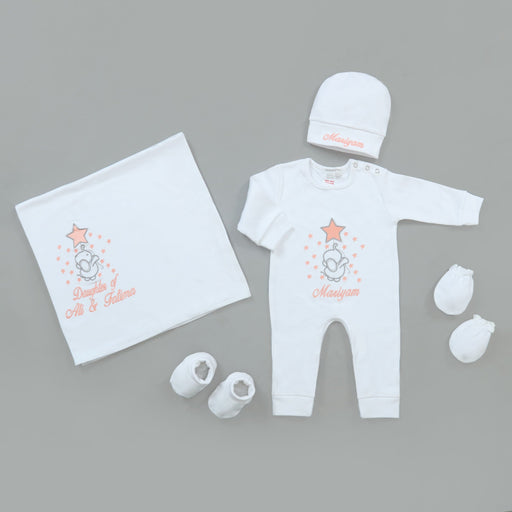 Delight the little one with our Customized Name Baby Bundle, a thoughtfully curated set that combines comfort, style, and personalization. This bea...