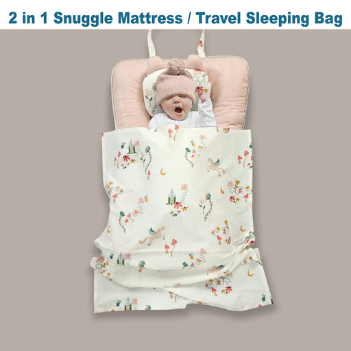 Drift into a world of whimsy with this enchanting portable bed featuring a magical unicorn print surrounded by mushrooms and blooming flowers. Desi...