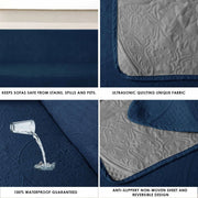 Reversible 100% Waterproof Quilted Sofa Cover Navy-Grey