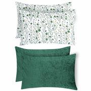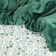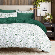 This elegant bedding ensemble features a soft white base adorned with delicate green and floral vines, evoking a fresh and soothing ambience. The reverse side boasts a luxurious deep green fleece fabric, offering both comfort and style β perfect for cozy nights and elegant bedroom decor. This razaye set ensures breathable warmth and long-lasting softness. The vibrant botanical print adds a refreshing charm, ideal for all seasons.