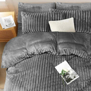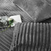 Jacquard Stripe Flannel Fleece 6pc Razaye Set-Grey