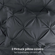 This is a luxurious pin tuck comforter bedding set, featuring a modern yet elegant ruched tufted design. The soft folds and gathered accents create a subtle starburst pattern across the fabric, adding texture and dimension to your bedroom. Crafted from smooth, breathable microfiber, it ensures comfort while enhancing visual appeal. Perfect for minimalist, or contemporary bedroom decor.
