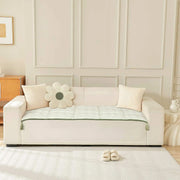 Add a touch of timeless elegance to your living space with this quilted sofa topper, featuring a soft pastel medallion pattern on a soothing base. Lightly padded for comfort and finished with neat green edging, it not only enhances your décor but also protects your sofa with style.